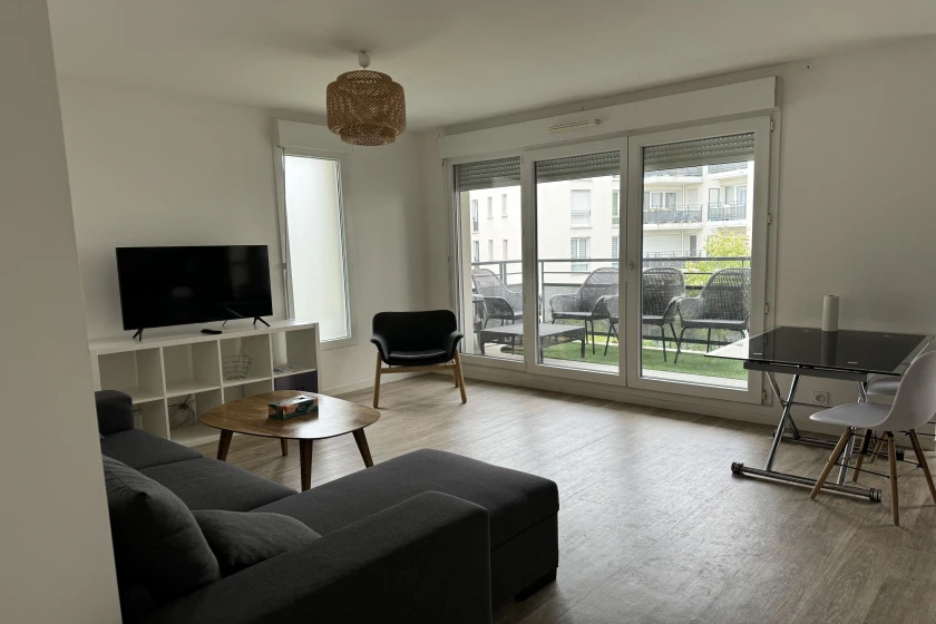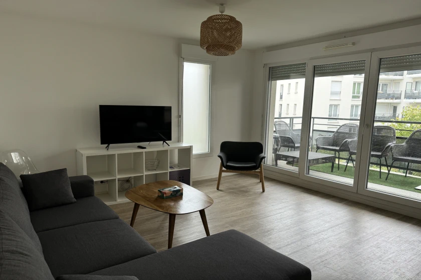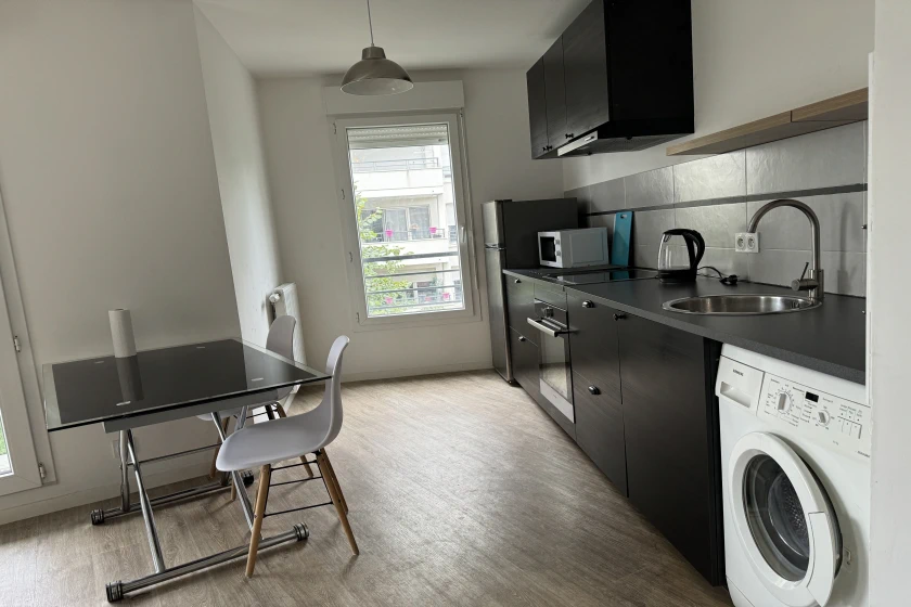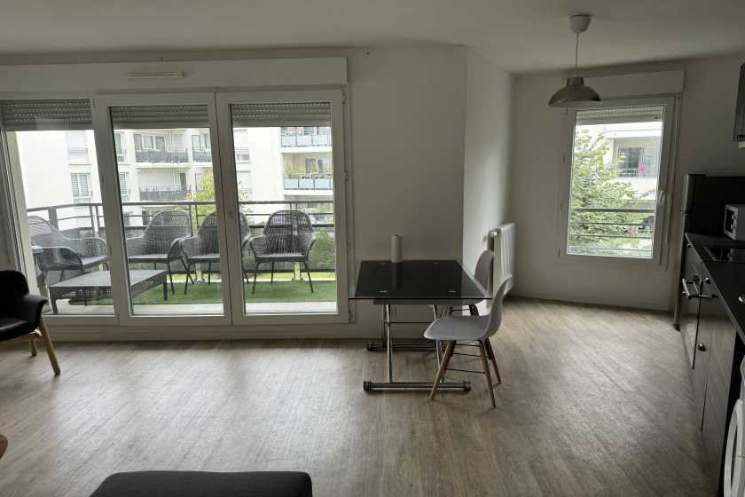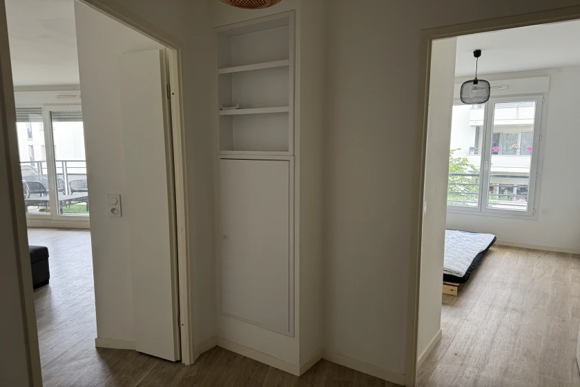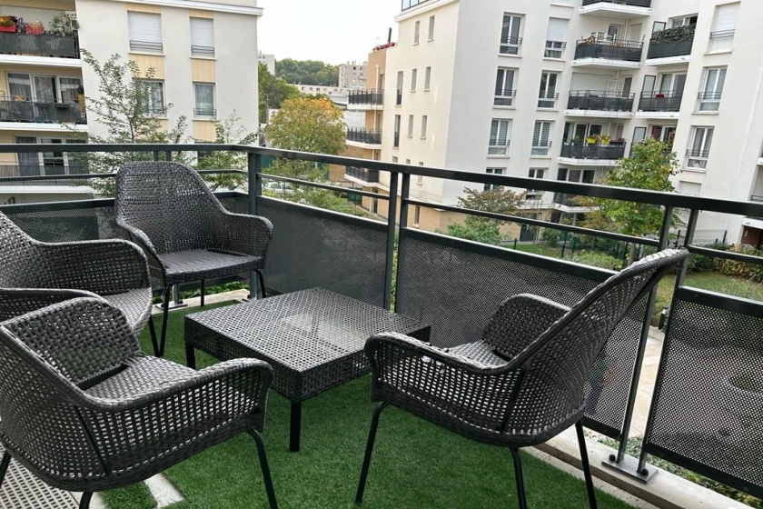 The apartment is located in Romainville, 10 minutes walk from metro line 5.